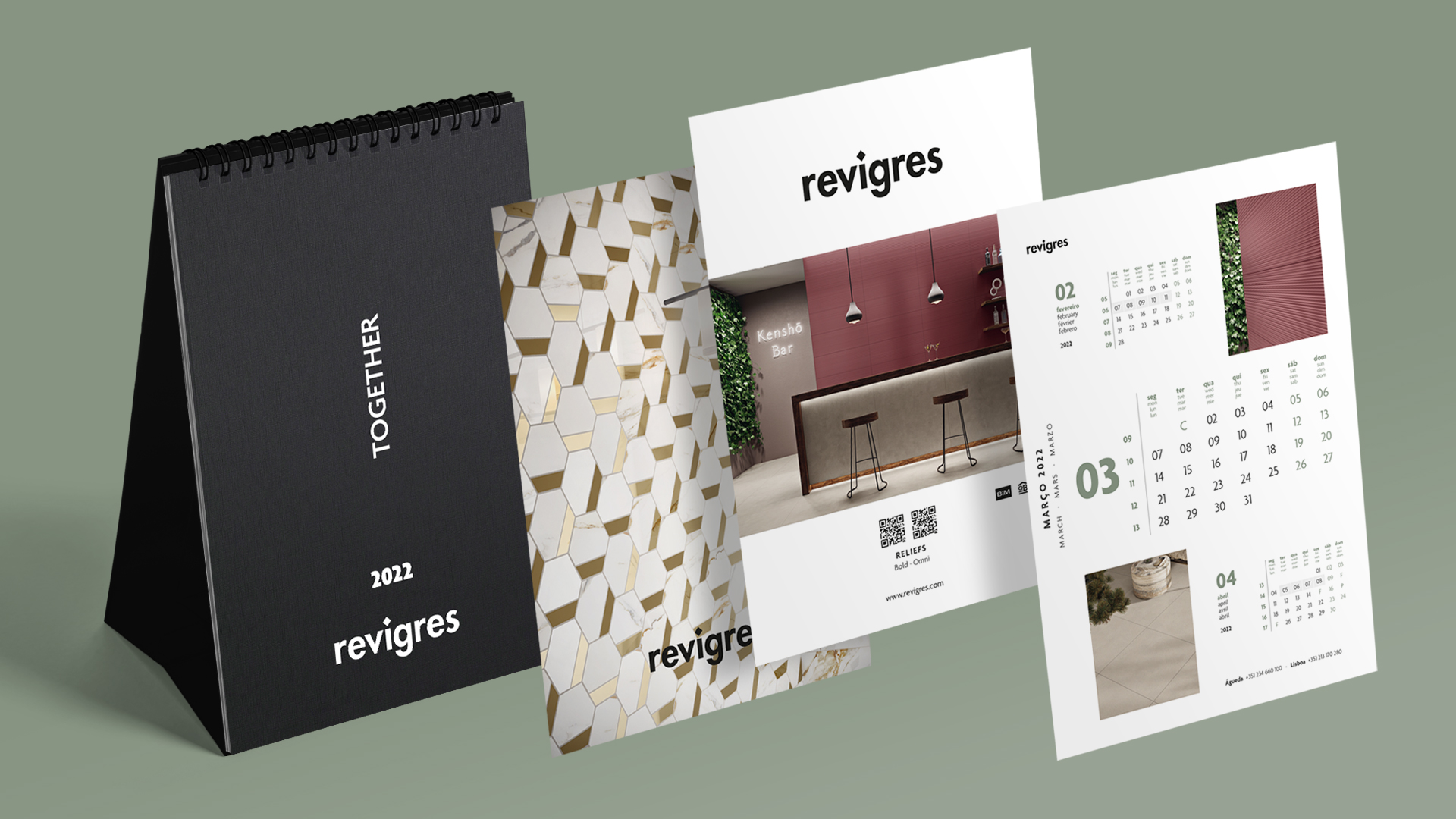 Um objeto com dupla função: consulta e promoção. O calendário ainda tem muito a oferecer num mundo cada vez mais digital. Esta edição conta com um grafismo fiel às normas gráficas da Revigrés, e com códigos QR de ligação para as coleções no digital. Um formato clássico, prático e pronto a utilizar.