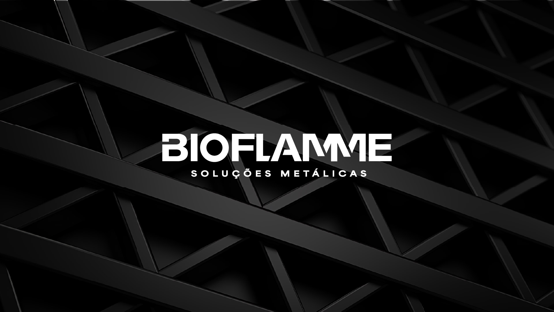 A identidade da Bioflamme reflete o carácter industrial, robusto e marcante da marca e do setor em que atua. O lettering transmite uma estrutura coesa, onde o encaixe preciso das letras forma um bloco sólido e impactante. Os cortes diagonais dão origem a um símbolo que sintetiza a essência de elevação e crescimento, representando a evolução da marca, dos seus projetos e soluções.